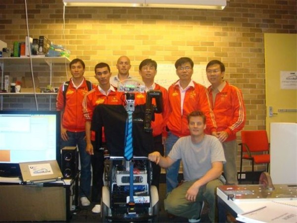 Buổi đầu tiên đoàn làm việc với Giáo sư Hùng Nguyễn - Trưởng khoa Kỹ thuật - Thông tin của Trường Đại học Kỹ Thuật Sydney (University of Technology Sydney - UTS). Sau đó tham dự buổi cơm trưa thân mật và chương trình tìm hiểu về LAB nghiên cứu các robot chăm sóc sức khỏe. Khi bước chân vào UTS mọi người đã choáng ngợp trước ngôi trường to đẹp và tiện nghi, còn khi bước vào LAB, là sự choáng ngợp trước các trang bị hiện đại. Trước hết chúng tôi được xem một đoạn phim về các sản phẩm mà LAB đang nghiên cứu như robot tim nhân tạo, robot nhận biết bệnh tiểu đường, robot xe lăn…Chúng tôi thật sự ấn tượng vì những thiết bị công nghệ mà chiếc xe lăn robot được tích hợp (những camera trị giá từ 5000 USD đến 20.000 USD, những máy tính chuyên dụng của hãng Apple nhỏ gọn, là mơ ước rất lớn của những người làm robot có liên quan đến xử lý ảnh tại Việt Nam).