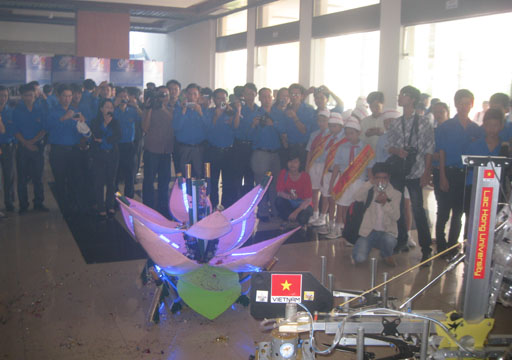 Robot bắn pháo trình diễn tại lễ khai mạc triễn lãm và lễ tuyên dương