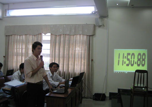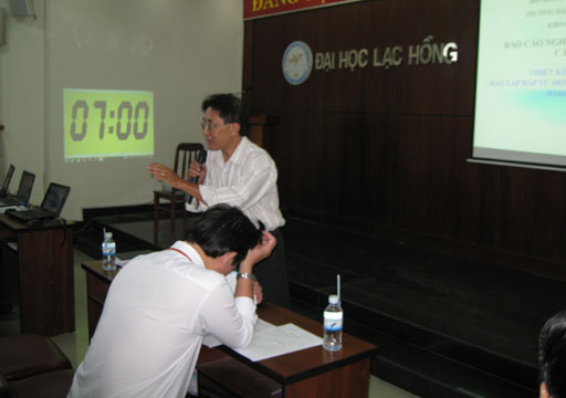 Các thầy trong hội đồng phản biện và góp ý cho từng đề tài