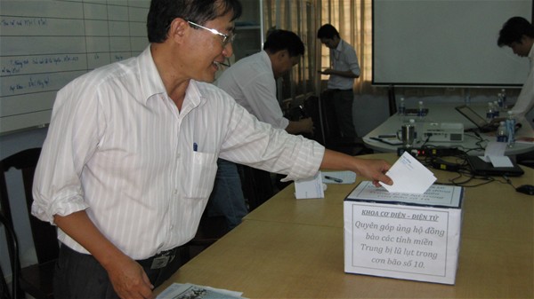 Khoa Cơ điện – Điện tử ủng hộ đồng bào miền trung vượt qua cơn bão số 10.