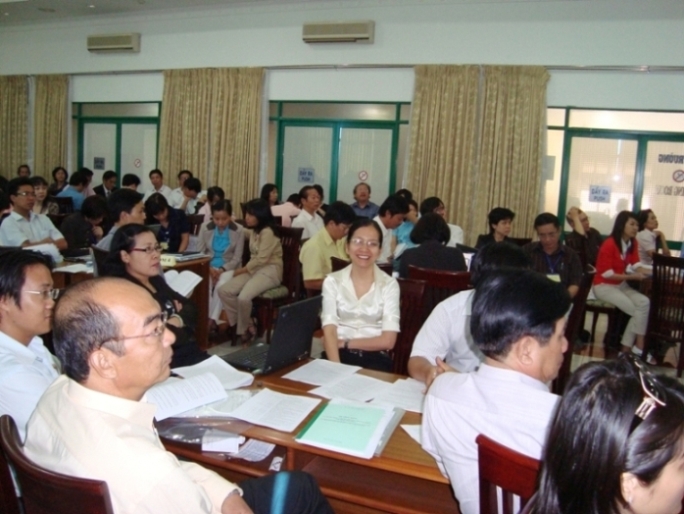 Tại lớp tập huấn các học viên đã chia thành nhiều nhóm nhỏ để trao đổi, thảo luận sôi nổi về Bộ tiêu chuẩn chất lượng, quy trình, phương pháp và công cụ đánh giá được các chuyên gia đánh giá ngoài sử dụng, cấu trúc của báo cáo tự đánh giá và những khó khăn mà từng đơn vị có thể gặp khi áp dụng tiêu chuẩn và quy trình đánh giá chất lượng chương trình đào tạo.