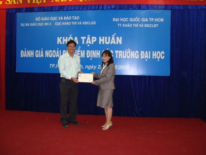 Tham gia lớp tập huấn có TS Phạm Xuân Thanh - Phó Cục Trưởng Cục Kiểm Định Chất Lượng Giáo Dục, TS Nguyễn Đức Nghĩa – Phó Giám Đốc ĐH Quốc Gia TP HCM, TS Vũ Thị Phương Anh – Giám đốc TT Khảo Thí & Kiểm Định Chất Lượng Đào Tạo – ĐH Quốc Gia TP HCM và lãnh đạo, chuyên viên kiểm định chất lượng của các trường ĐH.
