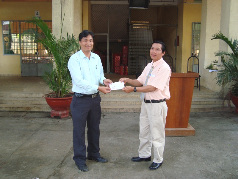 Thầy Nguyễn Văn Đông - Đại diện ban giám hiệu THPT Nam Hà nhận học bổng từ trường ĐH Lạc Hồng tài trợ