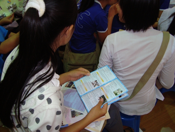 Các bạn học sinh nghiên cứu kỹ tờ giới thiệu của các trường