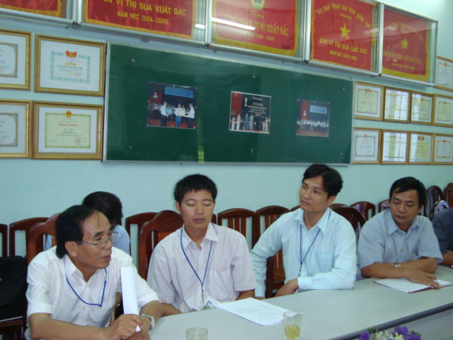 TS Trần Hành - Hiệu Trưởng nhà trường góp ý để các tác giả hoàn thiện đề tài hơn