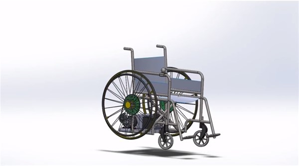 Nhóm sinh viên cải tiến bằng cách gắn thêm bộ kit gồm 2 động cơ điện, ắc - quy và bộ điều khiển giúp mọi loại xe lăn thông thường trở thành xe lăn điện.