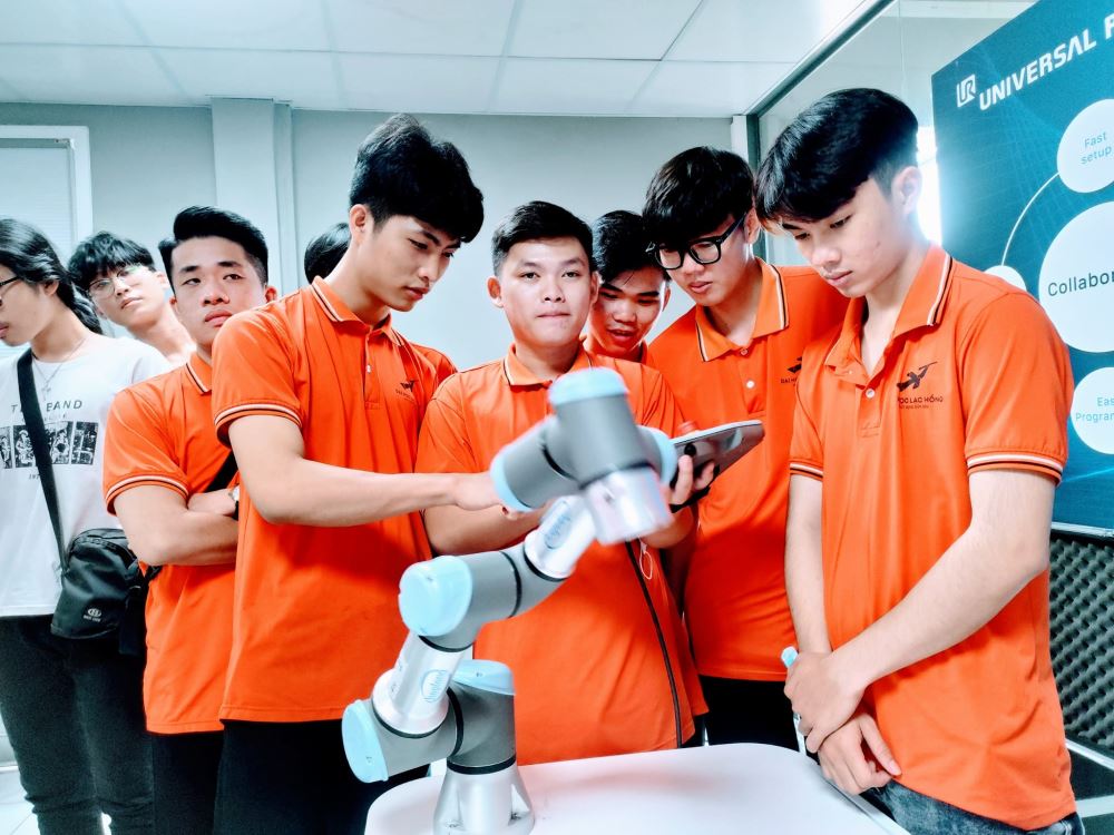 Cùng với sự đón tiếp nhiệt tình của lãnh đạo quý công ty Hợp Long Tech, các bạn sinh viên đã được tham quan học tập cách bố trí kho lưu trữ hàng hóa, giới thiệu về hoạt động kinh đặc biệt hơn là phần trải nghiệm Universal robot đã giúp cho các bạn sinh viên vô cùng phấn khích khi tự mình lập trình và điều khiển cho robot hoạt động thực tế. Rất nhiều câu hỏi về chuyên môn đã được các bạn sinh viên đặt ra cho Ông Đặng Thanh Tình khiến cho buổi tham quan trải nghiệm không khác gì so với một buổi học tại trường.