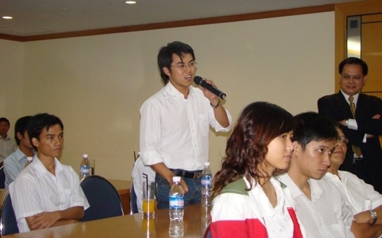 Các bạn sinh viên đặt các câu hỏi với các nhà tài trợ