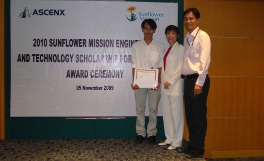 Ngày 05 – 11 – 2009, tại hội trường công ty ASCENX tọa lạc tại toà nhà ETOWER, 364 đường Cộng Hòa - Phường 13 - Quận Tân Bình – Thành Phố Hồ Chí Minh, lễ trao học bổng Sunflower Mission Engineering and Technology đã diễn ra trong không khí ấm áp, thân mật và không kém phần long trọng, hoành tráng. 30 sinh viên xuất sắc lọt qua rất nhiều vòng kiểm tra, phỏng vấn bằng tiếng anh đã có mặt để nhận học bổng.
