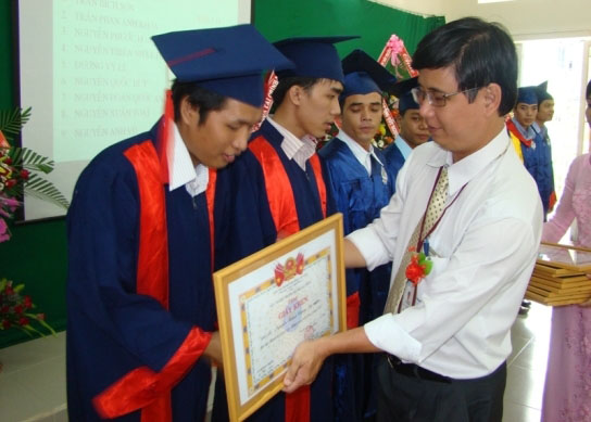 TS. Nguyễn Ngọc Phương trao bằng tốt nghiệp cho các tân kỹ sư, tân kỹ thuật viên chuyên ngành Điện Công Nghiệp và Cơ Điện Tử