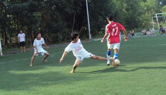 . Đội tuyển 08CD111 xuất quân với đội hình áo trắng và 09DC111 áo đỏ