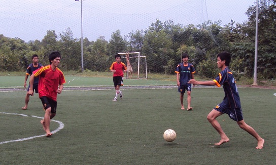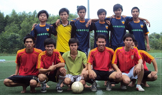 Đội tuyển 07CD111 mặc áo đỏ và 09MT112 mặc áo xanh