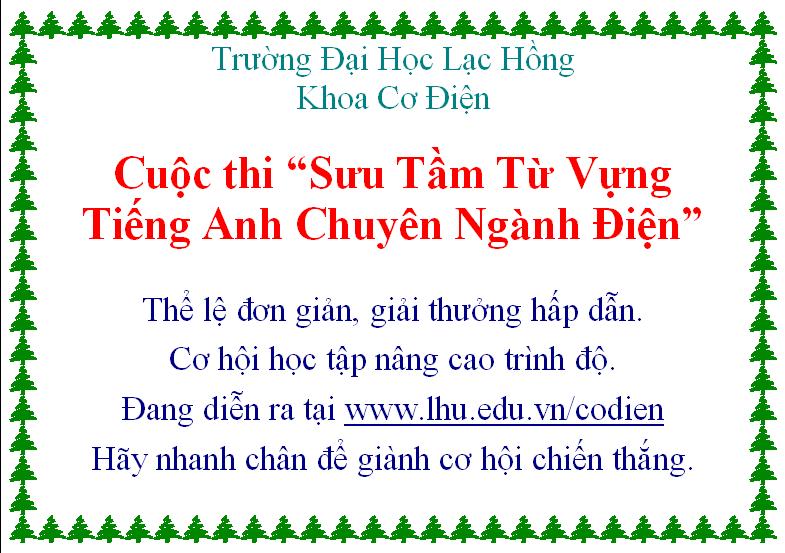 Thông báo tham gia cuộc thi "Sưu Tầm Từ Vựng Tiếng Anh Chuyên Ngành Điện"