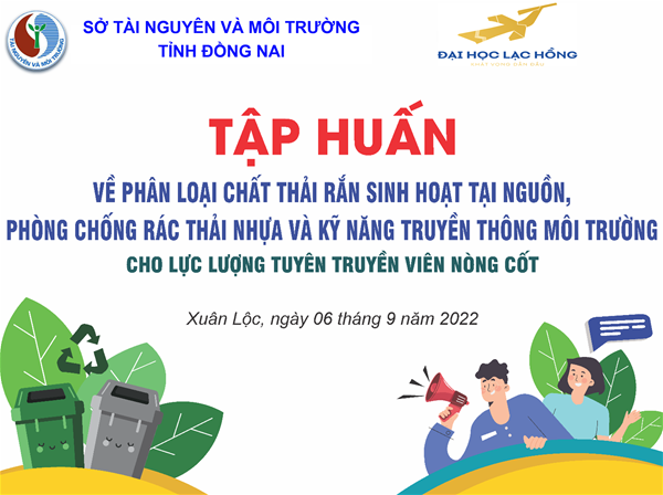 Khoa Khoa học & Công nghệ Thực phẩm Trường ĐH Lạc Hồng cùng đồng hành với Trung tâm Kỹ thuật tài nguyên và môi trường tỉnh Đồng Nai thực hiện chương trình tập huấn cho lực lượng tuyên truyền viên nòng cốt về phân loại chất thải rắn sinh hoạt tại nguồn và phòng chống rác thải nhựa năm 2022 theo quyết định số 734/QĐ-STNMT ngày 26/5/2022 của Sở Tài nguyên & Môi trường tỉnh Đồng Nai và theo chỉ đạo của Lãnh đạo trường ĐH Lạc Hồng.