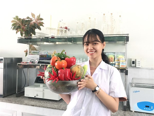 Trần Lê Anh Chi tại phòng thí nghiệm Công nghệ thực phẩm