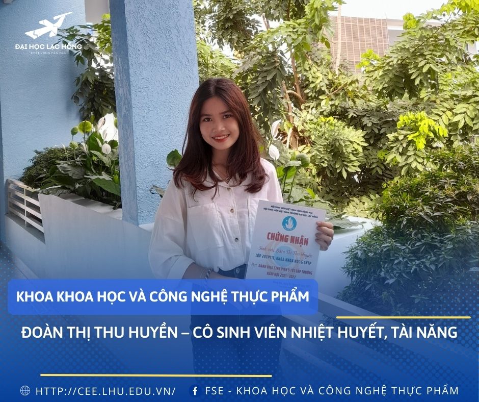 Nhiệt huyết, cống hiến, trách nhiệm, sáng tạo là những phẩm chất khi nói về Đoàn Thị Thu Huyền sinh viên năm 4 khoa KH&CN Thực phẩm, trường Đại học Lạc Hồng.