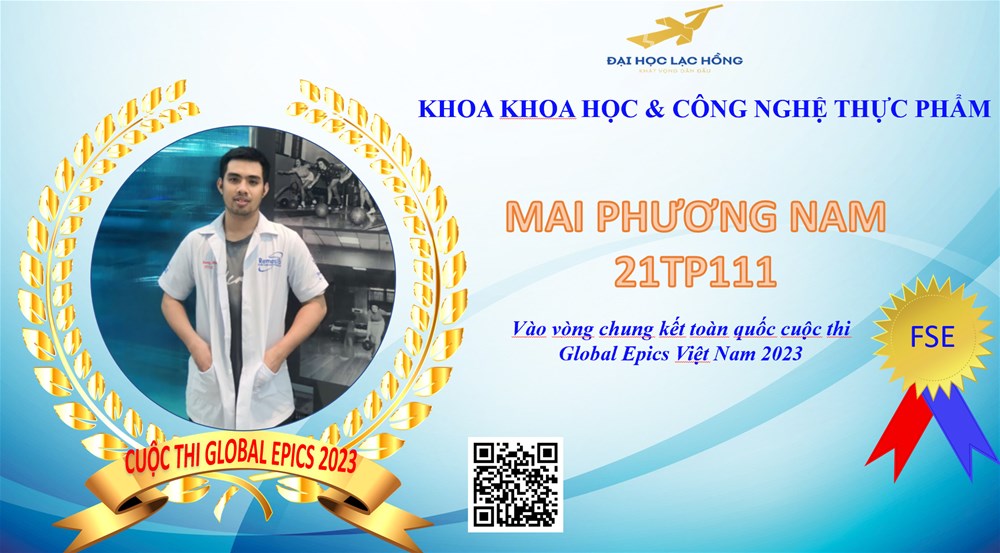 Trong năm 2023 khoa KH&CNTP đã rất tự hào, vui mừng khi chứng kiến thành tích xuất sắc của 5 sinh viên đạt giải nhất Hội thi sáng tạo khoa học kỹ thuật tỉnh Đồng Nai và 4 sinh viên lọt vào vòng chung kết toàn quốc cuộc thi Global Epics Việt Nam 2023.
