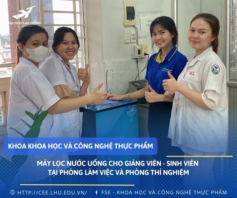 Thấu hiểu mong muốn và nhu cầu sử dụng nước uống hàng ngày của sinh viên, đồng thời nhận được sự hỗ trợ từ Doanh nghiệp. Khoa KH&CNTP đã lắp đặt hai máy lọc nước uống tại phòng học cho sinh viên ở Cơ sở 6 trường ĐH Lạc Hồng.