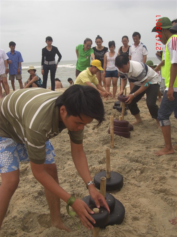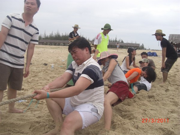 Tại khu du lịch, Quý thầy cô đã được tận hưởng bầu không khí trong lành, không gian thoáng mát và cảnh vật thật nên thơ và cùng đắm chìm với làn nước biển trong xanh, bãi cát trắng tinh cùng những trò chơi thật thú vị như kéo co, đổ nước vào chai, bóp trên bóp dưới, xây tháp….