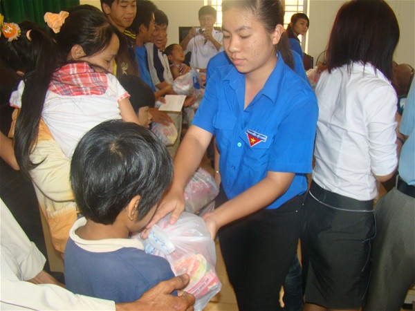 H03, 04: Các bạn Đoàn viên Thanh niên tham gia tặng quà.