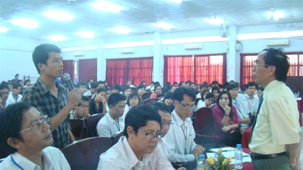 Câu hỏi được các bạn đưa ra chủ yếu về các vấn đề liên quan đến học tập và rèn luyện, về các chính sách, chiến lược phát triển, nâng cao chất lượng đào tạo và thương hiệu nhà trường trong thời gian tới. Đặc biệt các câu hỏi liên quan đến áp dụng công nghệ nhúng vào các ngành học, về phổ biến rộng rãi cách thức lập trình robocon, về du học nước ngoài, đào tạo Thạc sĩ, Tiến sĩ…đã thể hiện sự quan tâm sâu sắc của sinh viên đối với nhà trường. Thay mặt Ban Giám hiệu, Tiến sĩ Trần Hành đã trả lời toàn bộ các câu hỏi trực tiếp và trên giấy của các bạn sinh viên.