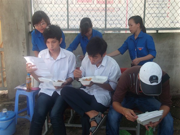 Vừa ăn cơm miễn phí vừa xem lại đề thi lúc sáng