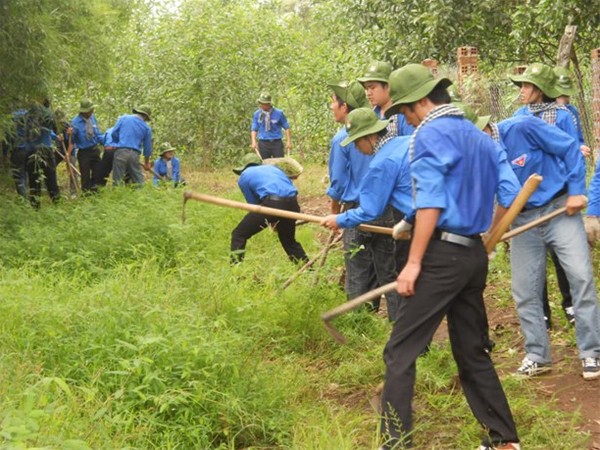 Đội Thanh niên tình nguyện cùng bà con sửa chữa đường giao thông nông thôn.