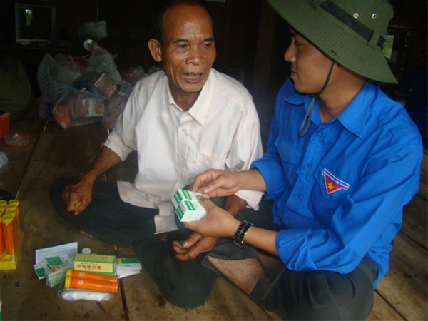 Hình 2: Cấp phát thuốc cho bà con Vân Kiều