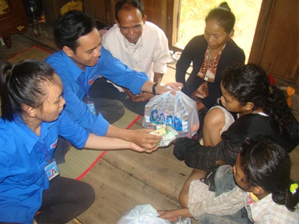 Hình 1: Tặng quà cho bà con dân tộc Vân Kiều