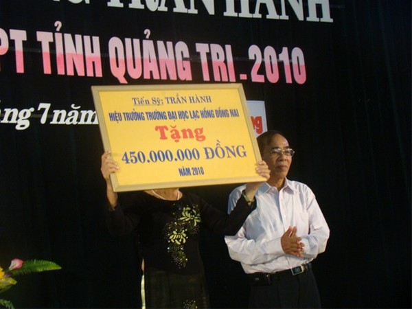 Giải thưởng dành riêng cho học sinh Quảng Trị đạt giải thưởng học sinh giỏi cấp quốc gia; học sinh giỏi cấp tỉnh; học sinh giỏi tiêu biểu ở các trường THPT; và đỡ đầu hàng năm cho những học sinh có hoàn cảnh đặc biệt khó khăn nhưng biết vượt qua hoàn cảnh để vươn lên trong học tập và rèn luyện. Kinh phí giải thưởng do cá nhân TS Trần Hành- Hiệu trưởng trường ĐH Lạc Hồng tài trợ (năm 2010, kinh phí cho giải thưởng là 450 triệu đồng).