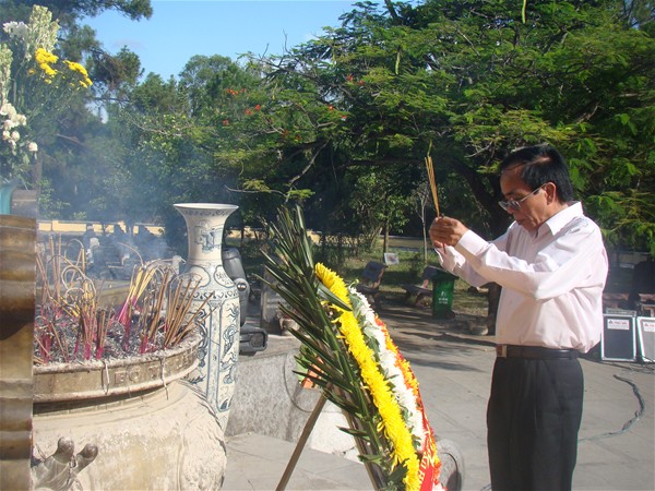 Hình 4: TS Trần Hành dâng hương tại bến Thạch Hãn