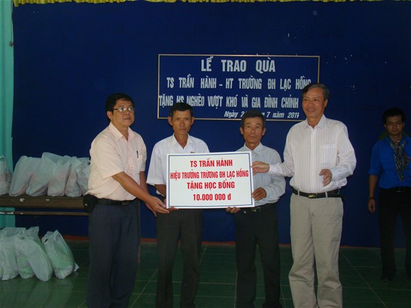 Cứ mỗi kỳ nghĩ hè đến, Tiến sĩ Trần Hành-Hiệu trưởng trường Đại học Lạc Hồng lại có chuyến hành hương về đất Quảng trị, nơi ấy ông đã trao tặng hàng ngàn suất học bổng cho các em vươn lên trong học tập. Và hôm nay ông lại trở về bởi các em đang chờ đón ông trong vòng tay yêu thương và ấm áp nghĩa tình của con người xứ Quảng hướng về cố hương.