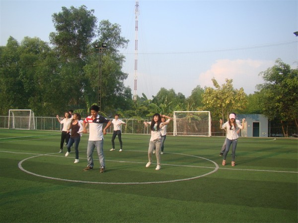 Tiết mục nhảy Gangnam Style do Đoàn trường ĐH Lạc Hồng tổ chức trong buổi giao lưu