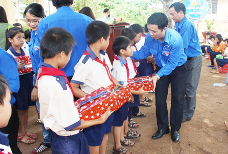 Hình 3: Thăm và tặng quà các em học sinh Trường tiểu học Lê Thị Hồng Gấm