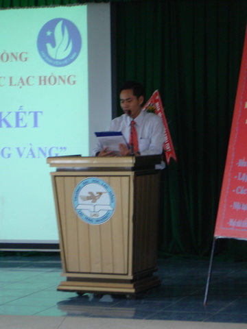 Hình 2: Đ/c Lê Sơn Quang - Chủ tịch Hội sinh viên trường, trưởng BTC phát biểu khai mạc