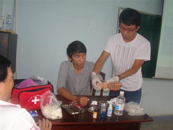 Hình 3: Sinh viên thực hành băng bó vết thương