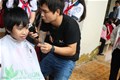Hình 4: Ngoài chơi trò chơi, khám bệnh các em còn được các anh chị là thợ chuyên nghiệp cắt tóc.