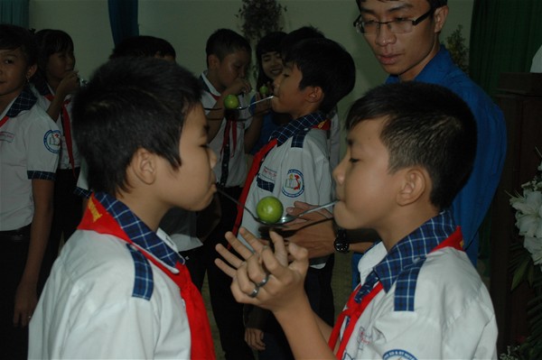 Hình 2: Các em tham gia trò chơi chuyền chanh