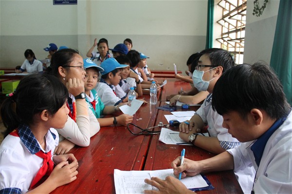Hình 3: Các em được các bác sĩ khám bệnh tại trường
