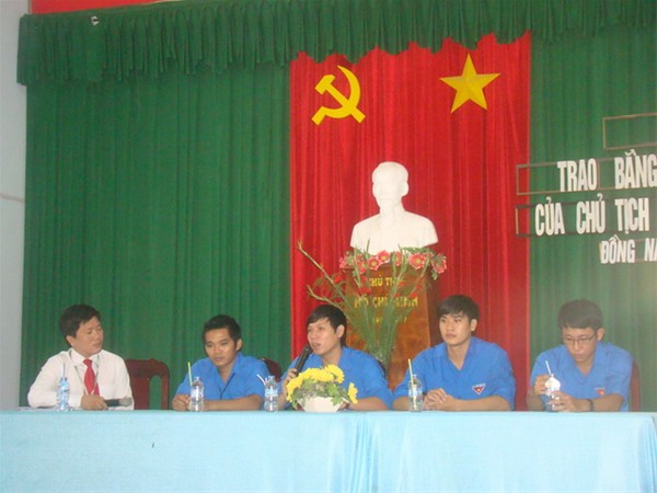 Hình 1: Ông Lê Mai Thanh (giữa) trao bằng khen của UBND Tỉnh Đồng Nai cho các em sinh viên