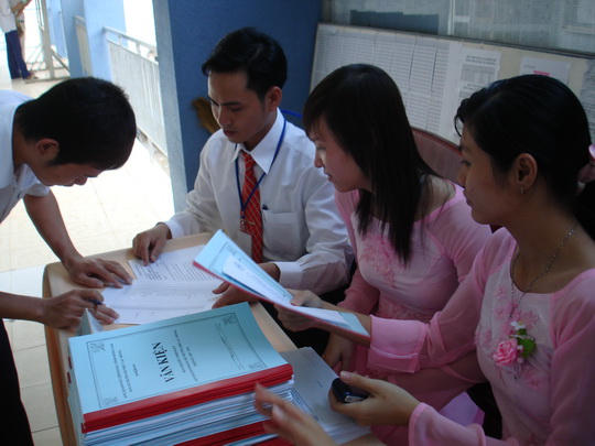 Hình 1: Các Đảng viên nhận tài liệu trước khi dự hội nghị