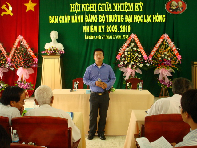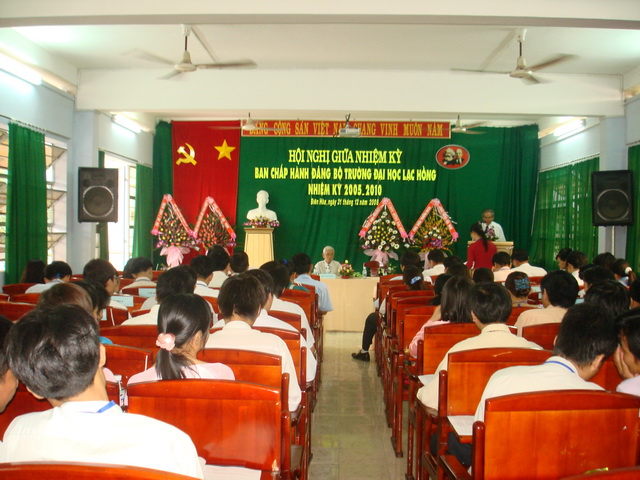 Hội nghị giữa nhiệm kỳ của Đảng bộ trường Đại Học Lạc Hồng được tổ chức vào lúc 14h00 ngày 31/12/2008 tại phòng B304 – Cơ sở I trường Đại Học Lạc Hồng. Đến tham dự hội nghị có Đ/c Nguyễn Văn Dàn – Phó bí thư Đảng ủy khối dân chính Đảng tỉnh Đồng Nai, Đ/c Hà Quang Vượng – Trưởng Ban tổ chức Đảng ủy khối dân chính Đảng tỉnh Đồng Nai; về phía nhà trường có NGƯT – TS Đỗ Hữu Tài – Chủ tịch HĐQT nhà trường, TS Trần Hành – Hiệu trưởng nhà trường.