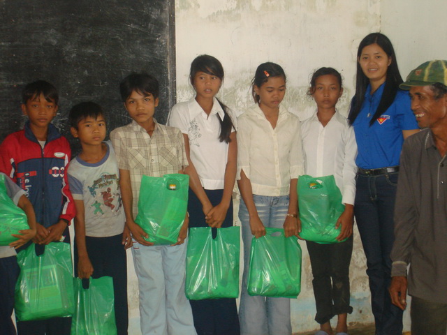 Hình 6: Thăm và tặng quà cho các em thiếu nhi và đồng bào dân tộc Stiêng tại huyện Long Thành trong đợt tham gia chiến dịch Mùa hè xanh năm 2008 tại xã Tân Hiệp