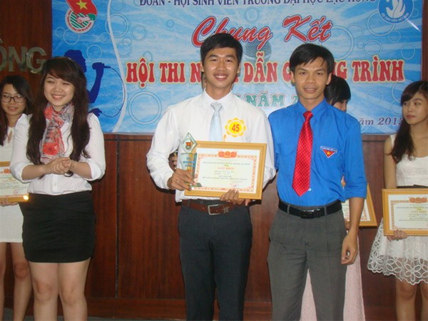 Hình 4: Đ/c Trần Tiến - Chủ tịch Hội sinh viên trường, trao giải nhì của cuộc thi