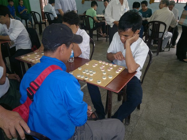 Hình 2: Các bạn sinh viên trường Đại học Lạc Hồng tham gia thi đấu giải cờ tướng.