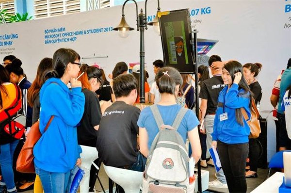 Trong chương trình, các bạn sinh viên đã được trải nghiệm các dòng sản phẩm máy tính mới nhất, đồng thời nhận được những quà tặng khi tham gia chương trình như: áo thun, túi chống sốc, ba lô thời trang. Đặc biệt, trong phần bốc thăm trúng thưởng sinh viên Võ Thị Hồng Sương – Lớp 13DS115 đã trở thành chủ sở hữu sản phẩm ASUS T100.