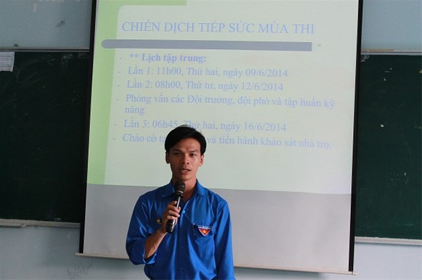 Hình 5- Đồng chí Trần Tiến - Phó Bí thư Đoàn; Chủ tịch Hội sinh viên trường triển khai các nội dung liên quan đến chiến dịch
