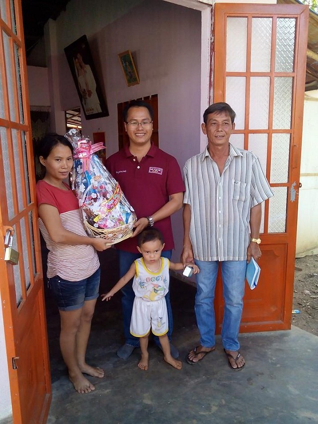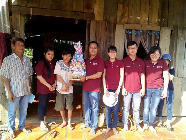 Hình 1- CLB kỹ năng tặng quà cho chú Trần Văn Chuyến - Bộ đội xuất ngũ, được trường ĐH Lạc Hồng trao tặng nhà nhân ái trong chiến dịch TNTN Mùa hè xanh năm 2014 tại xã Mã Đà, huyện Vĩnh Cửu