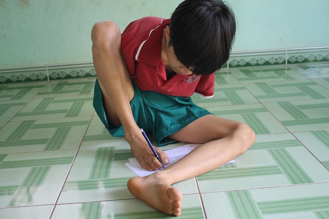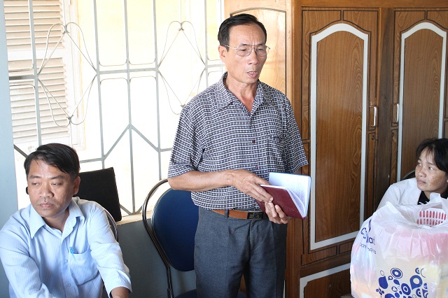 Hình 4- Đoàn công tác trực tiếp đến thăm và tặng quà tại gia đình em Điểu Văn Kiệt - nạn nhân bị liệt hai chân, huyện Định Quán