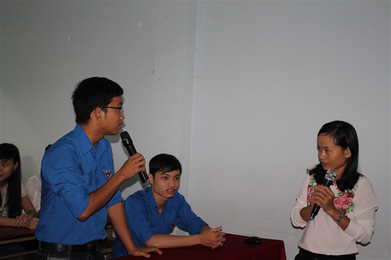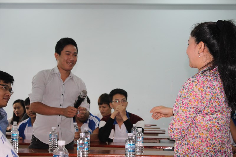 Hình 2: Báo cáo viên trao đổi với sinh viên về HIV/AIDS
